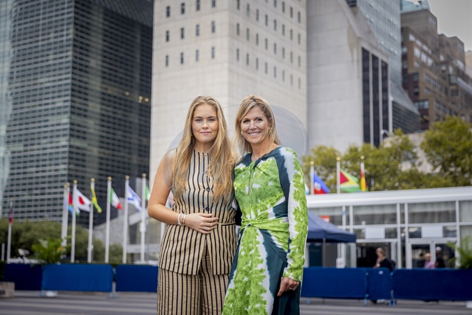 New York, The Netherlands, 2025-09-25 21:08:11NEW YORK, September 25, 2025. Queen Máxima will visit Washington, DC, on Monday, September 22, as the United Nations Secretary-General's Special Advocate for Financial Security (UNSGSA). Princess Amalia will be present throughout the visit to observe Queen Máxima's UN work. PHOTO: NLBeeld. Pictured: Queen Máxima and Princess Amalia pose at the United Nations building in New York., Credit:Avalon