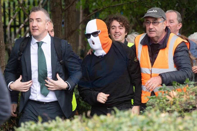 Mo Chara (Liam Óg Ó hAnnaidh) of Northern Irish trio Kneecap (identified by the ring on his right finger) arrives at Woolwich Crown Court in London, England, UK on Friday 26 September, 2025., Credit:Justin Ng / Avalon