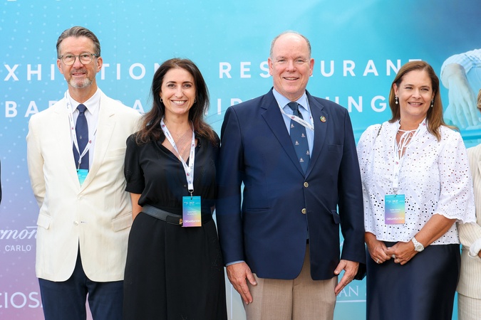 No Tabloïds - Le prince Albert II de Monaco pose avec Carole Pichot, chef de l'exploitation du Monaco Yacht Show et Gaëlle Tallarida, directrice générale du Monaco Yacht Show du salon international de superyachts "Monaco Yacht Show 2025", à Monte-Carlo, Monaco, le 25 septembre 2025. © Claudia Albuquerque/Bestimage No Tabloïds - Only for OK, Hello, Grazia - No Mail Online - Prince Albert II of Monaco attends the Monaco Yacht Show in Monte Carlo, Monaco, on September 25, 2025.