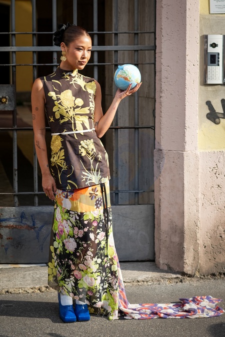Street Style: A guest is seen outside of the Moschino fashion show during the Milan Fashion Week Womenswear Spring/Summer 2026 in Milan, Italy on 25 September 2025., Credit:Stefano Costantino TTL / Avalon