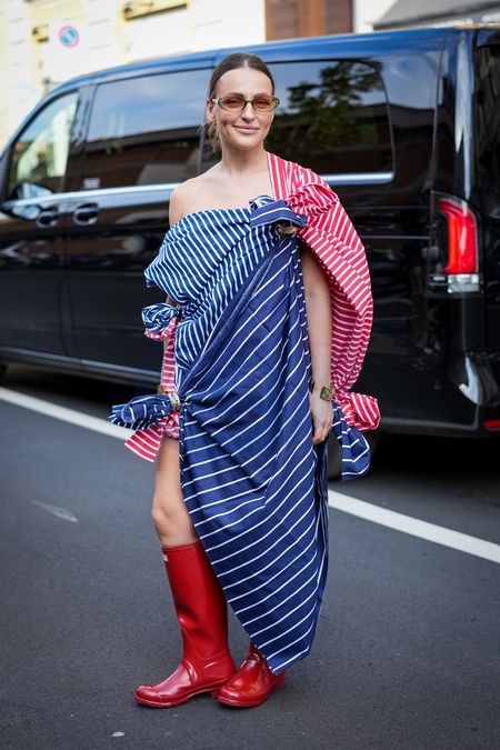 Street Style at Milan Fashion Week 2025 - Moschino in Milan, Italy on 25 September 2025.