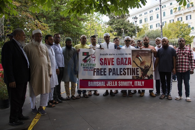 Rome, Italy. 26 september 2025. Demonstration organized by the Muslims of Rome in support of the Palestinian population of Gaza.. EDITORIAL USE ONLY - NOT FOR COMMERCIAL USE. It may only be used in accordance with the context in which it was taken, and without any intent to defame or cause harm to the individuals depicted. By Using it, you agree to these terms of use., Credit:Diego Nangano Cappello / Avalon