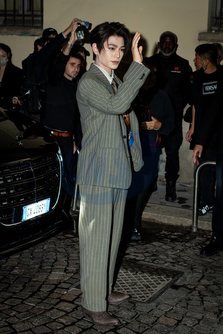 Chinese actor Ding Yuxi is seen outside of the Versace fashion show during the Milan Fashion Week Womenswear Spring/Summer 2026 in Milan, Italy on 26 September 2025., Credit:Stefano Costantino TTL / Avalon