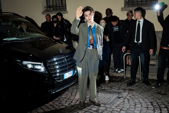 Chinese actor Ding Yuxi is seen outside of the Versace fashion show during the Milan Fashion Week Womenswear Spring/Summer 2026 in Milan, Italy on 26 September 2025., Credit:Stefano Costantino TTL / Avalon