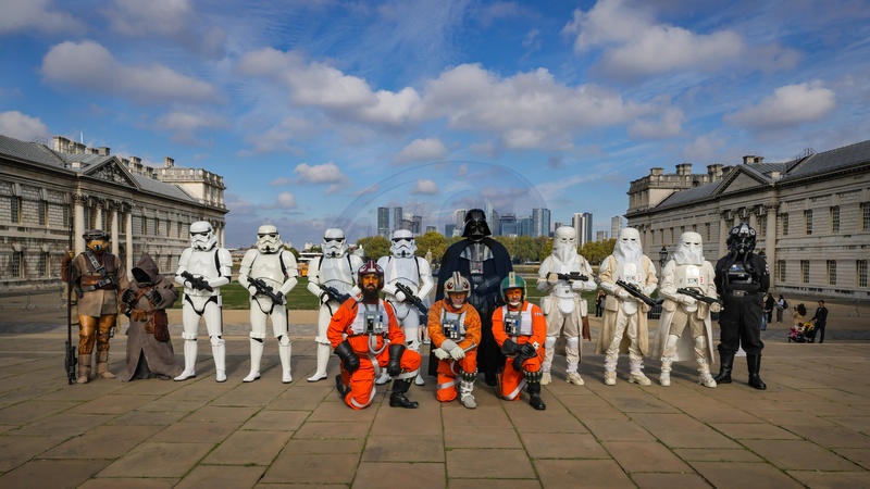 London, UK, 27th Sep 2025. Star Wars characters pose in the iconic surroundings. Iconic screen characters take over the Old Rotal Nanal College grounds, Painted Hall and courtyards, in a Film100 cinematic celebration and Guinness World Record attempt for the largest number of people dressed as TV and film characters gathered. The marks 100 years of filmmaking on-site for the Old Royal Naval College and Elstree Studios., Credit:Imageplotter / Avalon