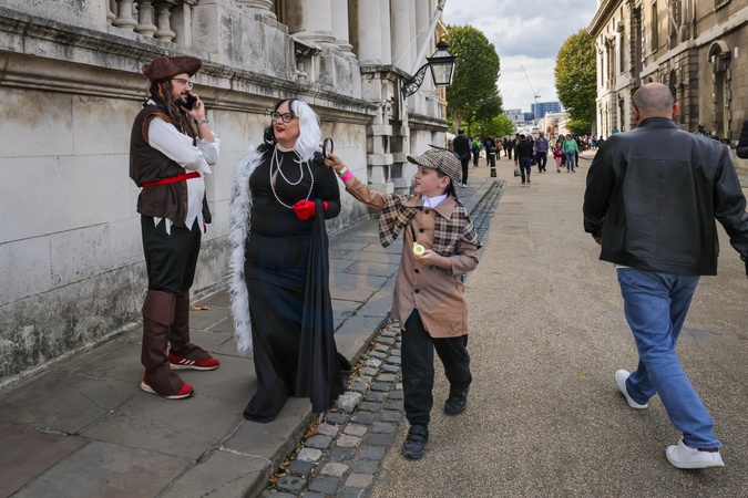 London, UK, 27th Sep 2025. Cruella de Ville and Young Sherlock pass Jack Sparrow the pirate. Iconic screen characters take over the Old Rotal Nanal College grounds, Painted Hall and courtyards, in a Film100 cinematic celebration and Guinness World Record attempt for the largest number of people dressed as TV and film characters gathered. The marks 100 years of filmmaking on-site for the Old Royal Naval College and Elstree Studios., Credit:Imageplotter / Avalon