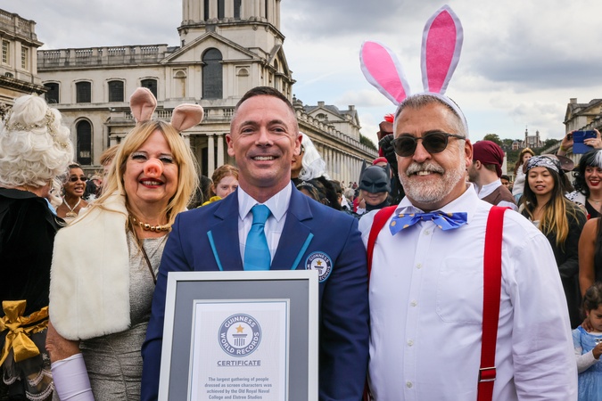 Guinness World Record achieved as screen characters mark 100 years of filming at the Old Royal Naval College in Greenwich, London, UK,
