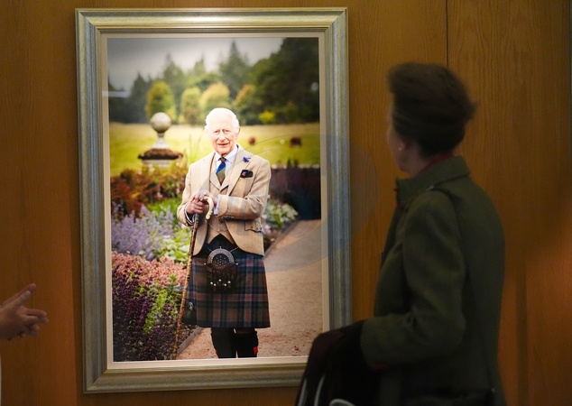 The Princess Royal unveils a new portrait of King Charles III, taken by photographer Millie Pilkington, during a visit to the Scottish Parliament at Holyrood, Edinburgh., Credit:Andrew Milligan / Avalon