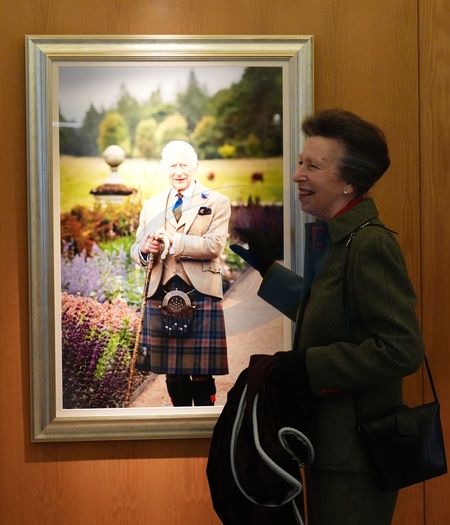The Princess Royal unveils a new portrait of King Charles III, taken by photographer Millie Pilkington, during a visit to the Scottish Parliament at Holyrood, Edinburgh., Credit:Andrew Milligan / Avalon