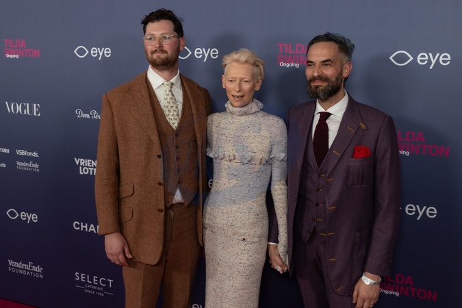 Amsterdam, The Netherlands, 2025-09-27 19:45:30September 27, 2025, Eye Film Museum, Amsterdam, Netherlands. Opening of the Tilda Swinton exhibition. Pictured: Tilda Swinton, Sandro Kopp, and Xavier Byrne. Photo: NL Beeld / David Heukers, Credit:Avalon