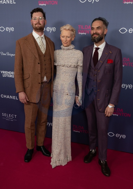 Amsterdam, The Netherlands, 2025-09-27 19:45:28September 27, 2025, Eye Film Museum, Amsterdam, Netherlands. Opening of the Tilda Swinton exhibition. Pictured: Tilda Swinton, Sandro Kopp, and Xavier Byrne. Photo: NL Beeld / David Heukers, Credit:Avalon