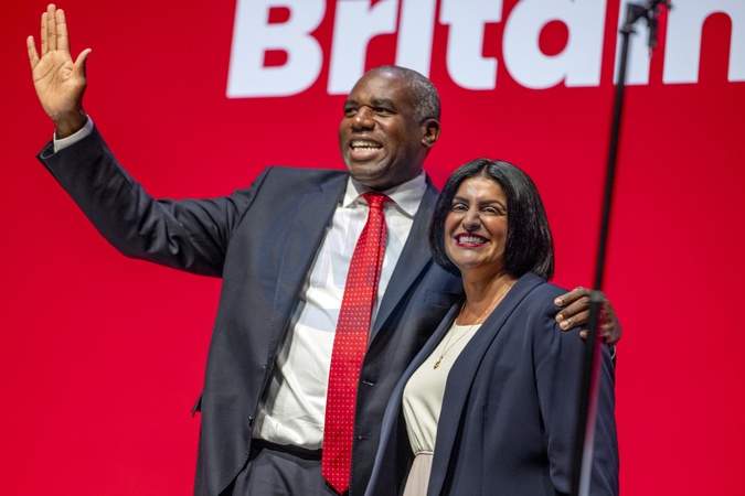 Liverpool, UK — 29 September 2025. Shabana Mahmood MP, Secretary of State for the Home Department, delivers her speech to delegates on Day 2 of the Labour Party Conference. Following her address, she shares a hug with Deputy Prime Minister David Lammy., Credit:Abdullah Bailey / Avalon