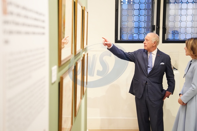 King Charles III with Aura Woodward, director of the Romanian Cultural Institute in London, during a visit to view the Queen Marie of Romania exhibition at the Garrison Chapel in London. Picture date: Monday September 29, 2025., Credit:Jordan Pettitt / Avalon