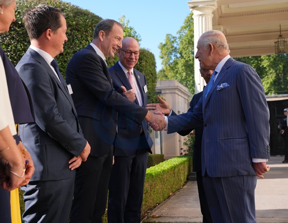 King Charles III greets Jason Tarry, Chairman, John Lewis Partnership, during a reception for King Charles III Charitable Fund (KCCF), at Clarence House, London, for representatives from charities and organisations that have benefited from the fund via its partnership with Waitrose Duchy Organic. Picture date: Tuesday September 30, 2025., Credit:Yui Mok / Avalon