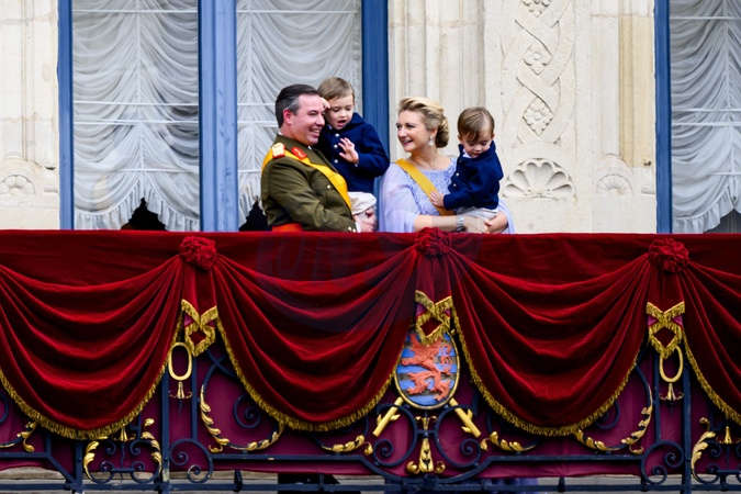 Luxemburg, The Netherlands, 2025-10-03 12:18:57LUXEMBOURG, 03-10-2025, Abdication of His Royal Highness Grand Duke Henri and the installation of His Royal Highness Hereditary Grand Duke Guillaume PHOTO: NLBeeld/Patrick van EmstIn the photo: Grand Duke Guillaume of Luxembourg and Duchess Stéphanie with their son Prince Léopold of Nassau, Credit:Avalon