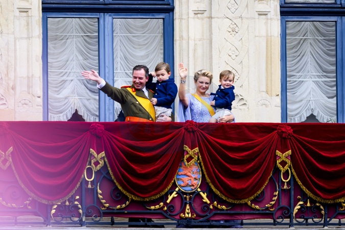 Luxemburg, The Netherlands, 2025-10-03 12:18:46LUXEMBOURG, 03-10-2025, Abdication of His Royal Highness Grand Duke Henri and the installation of His Royal Highness Hereditary Grand Duke Guillaume PHOTO: NLBeeld/Patrick van EmstIn the photo: Grand Duke Guillaume of Luxembourg and Duchess Stéphanie with their son Prince Léopold of Nassau, Credit:Avalon