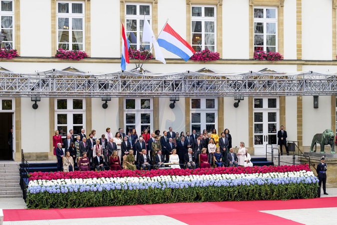 Luxemburg, The Netherlands, 2025-10-03 13:04:12LUXEMBOURG, 03-10-2025, Abdication of His Royal Highness Grand Duke Henri and the installation of His Royal Highness Hereditary Grand Duke Guillaume PHOTO: NLBeeld/Patrick van EmstIn the photo: Grand Duke Guillaume of Luxembourg and Duchess Stéphanie, Grand Duke Henri and Duchess Maria Teresa of Luxembourg, King Willem Alexander, Queen Máxima and the Princess of Orange, King Philippe of Belgium with Queen Mathilde and Crown Princess Elisabeth, Credit:Avalon