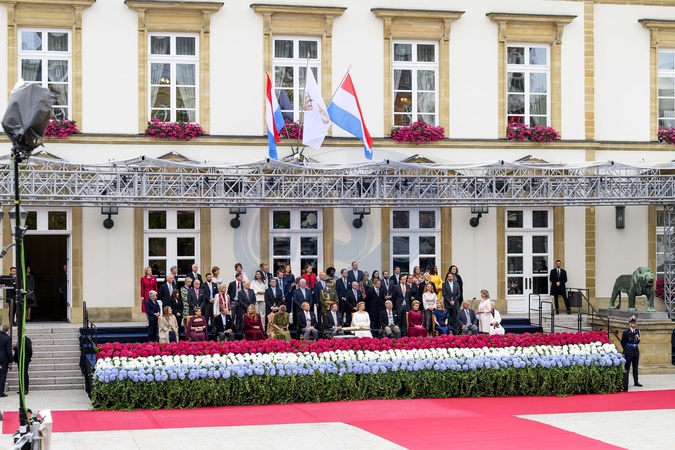 Luxemburg, The Netherlands, 2025-10-03 13:04:20LUXEMBOURG, 03-10-2025, Abdication of His Royal Highness Grand Duke Henri and the installation of His Royal Highness Hereditary Grand Duke Guillaume PHOTO: NLBeeld/Patrick van EmstIn the photo: Grand Duke Guillaume of Luxembourg and Duchess Stéphanie, Grand Duke Henri and Duchess Maria Teresa of Luxembourg, King Willem Alexander, Queen Máxima and the Princess of Orange, King Philippe of Belgium with Queen Mathilde and Crown Princess Elisabeth, Credit:Avalon