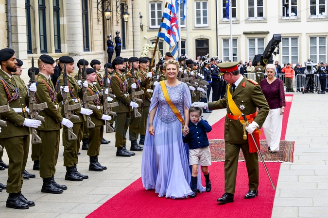 Luxemburg, The Netherlands, 2025-10-03 11:47:29LUXEMBOURG, 03-10-2025, Abdication of His Royal Highness Grand Duke Henri and the installation of His Royal Highness Hereditary Grand Duke Guillaume PHOTO: NLBeeld/Patrick van EmstIn the photo: Grand Duke Guillaume of Luxembourg and Duchess Stéphanie with their son Prince Léopold of Nassau, Credit:Avalon