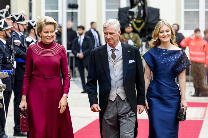 Luxemburg, The Netherlands, 2025-10-03 11:53:42LUXEMBOURG, 03-10-2025, Abdication of His Royal Highness Grand Duke Henri and the installation of His Royal Highness Hereditary Grand Duke Guillaume PHOTO: NLBeeld/Patrick van EmstIn the photo: King Philippe of Belgium with Queen Mathilde and Crown Princess Elisabeth, Credit:Avalon