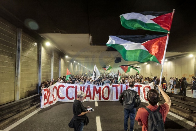 General strike for the Global Sumud Flotilla, demonstration by CGIL and USB. In the photo, protesters occupy the Eastern Ring Road. Rome, Italy 03 Oct 2025, Credit:Cristiano Minichiello / Avalon