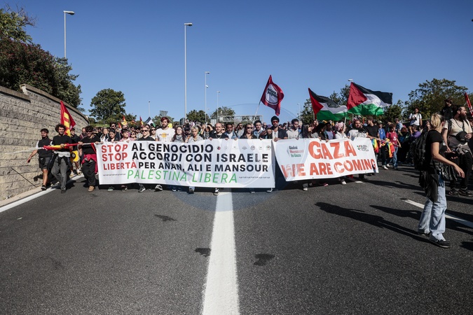 General strike for the Global Sumud Flotilla, demonstration by CGIL and USB. In the photo, protesters occupy the Eastern Ring Road. Rome, Italy 03 Oct 2025, Credit:Cristiano Minichiello / Avalon