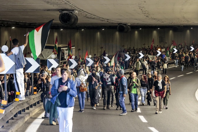 General strike for the Global Sumud Flotilla, demonstration by CGIL and USB. In the photo, protesters occupy the Eastern Ring Road. Rome, Italy 03 Oct 2025, Credit:Cristiano Minichiello / Avalon