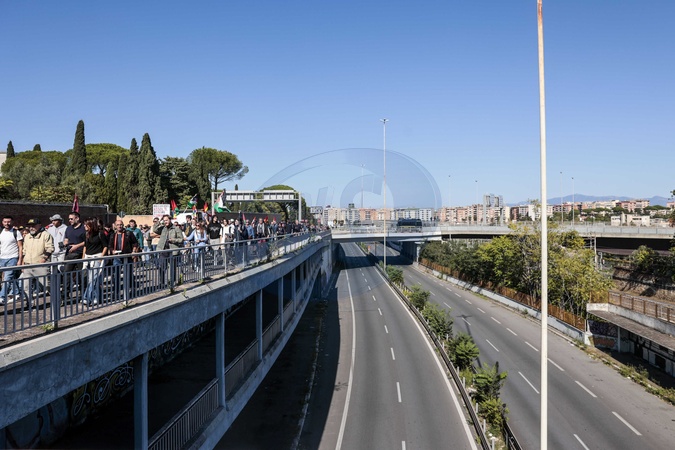 General strike for the Global Sumud Flotilla, demonstration by CGIL and USB. In the photo, protesters occupy the Eastern Ring Road. Rome, Italy 03 Oct 2025, Credit:Cristiano Minichiello / Avalon
