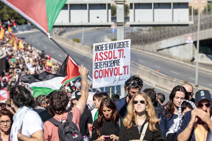 General strike for the Global Sumud Flotilla, demonstration by CGIL and USB. In the photo, protesters occupy the Eastern Ring Road. Rome, Italy 03 Oct 2025, Credit:Cristiano Minichiello / Avalon