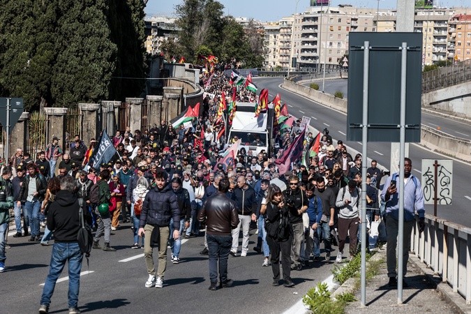 General strike for the Global Sumud Flotilla, demonstration by CGIL and USB. In the photo, protesters occupy the Eastern Ring Road. Rome, Italy 03 Oct 2025, Credit:Cristiano Minichiello / Avalon