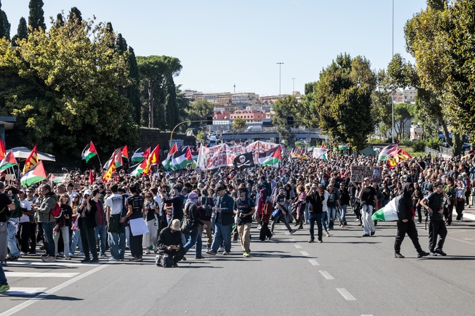 General strike for the Global Sumud Flotilla, demonstration by CGIL and USB. In the photo, protesters occupy the Eastern Ring Road. Rome, Italy 03 Oct 2025, Credit:Cristiano Minichiello / Avalon