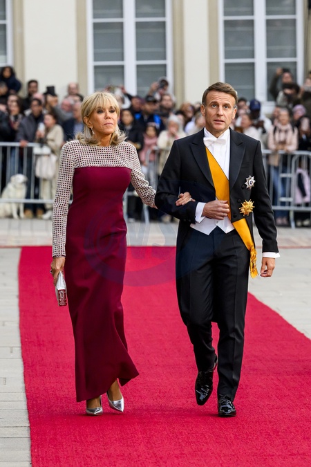 Luxemburg, The Netherlands, 2025-10-03 18:36:49LUXEMBOURG, 03-10-2025, Grand Ducal Palace Abdication of His Royal Highness Grand Duke Henri and the installation of His Royal Highness Hereditary Grand Duke Guillaume PHOTO: NLBeeld/Patrick van EmstIn the photo: Emmanuel Macron and Brigitte Macron, Credit:Avalon