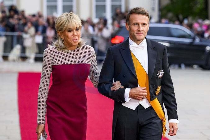 Luxemburg, The Netherlands, 2025-10-03 18:36:59LUXEMBOURG, 03-10-2025, Grand Ducal Palace Abdication of His Royal Highness Grand Duke Henri and the installation of His Royal Highness Hereditary Grand Duke Guillaume PHOTO: NLBeeld/Patrick van EmstIn the photo: Emmanuel Macron and Brigitte Macron, Credit:Avalon