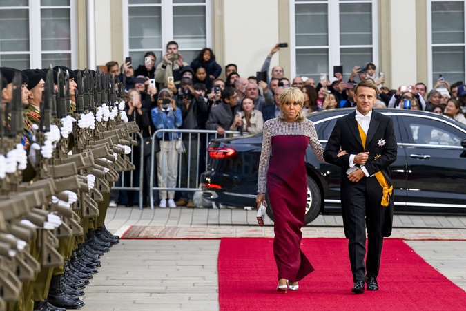Luxemburg, The Netherlands, 2025-10-03 18:36:29LUXEMBOURG, 03-10-2025, Grand Ducal Palace Abdication of His Royal Highness Grand Duke Henri and the installation of His Royal Highness Hereditary Grand Duke Guillaume PHOTO: NLBeeld/Patrick van EmstIn the photo: Emmanuel Macron and Brigitte Macron, Credit:Avalon