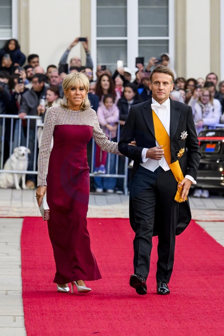 Luxemburg, The Netherlands, 2025-10-03 18:36:39LUXEMBOURG, 03-10-2025, Grand Ducal Palace Abdication of His Royal Highness Grand Duke Henri and the installation of His Royal Highness Hereditary Grand Duke Guillaume PHOTO: NLBeeld/Patrick van EmstIn the photo: Emmanuel Macron and Brigitte Macron, Credit:Avalon