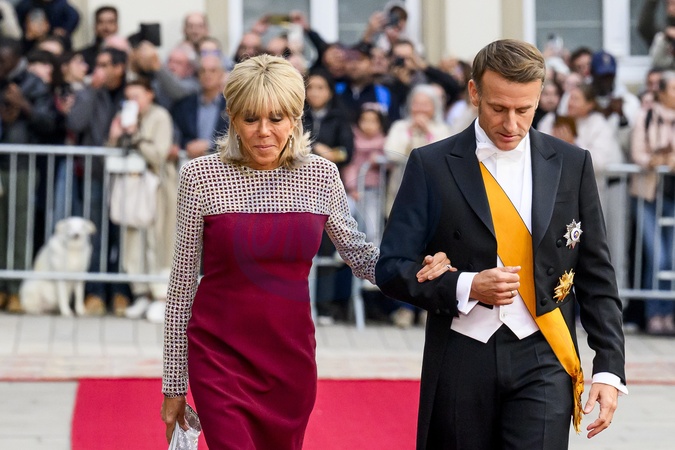Luxemburg, The Netherlands, 2025-10-03 18:36:48LUXEMBOURG, 03-10-2025, Grand Ducal Palace Abdication of His Royal Highness Grand Duke Henri and the installation of His Royal Highness Hereditary Grand Duke Guillaume PHOTO: NLBeeld/Patrick van EmstIn the photo: Emmanuel Macron and Brigitte Macron, Credit:Avalon