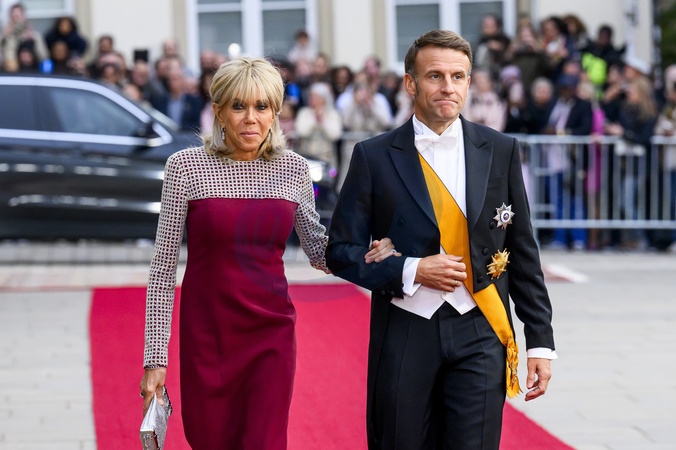 Luxemburg, The Netherlands, 2025-10-03 18:36:53LUXEMBOURG, 03-10-2025, Grand Ducal Palace Abdication of His Royal Highness Grand Duke Henri and the installation of His Royal Highness Hereditary Grand Duke Guillaume PHOTO: NLBeeld/Patrick van EmstIn the photo: Emmanuel Macron and Brigitte Macron, Credit:Avalon