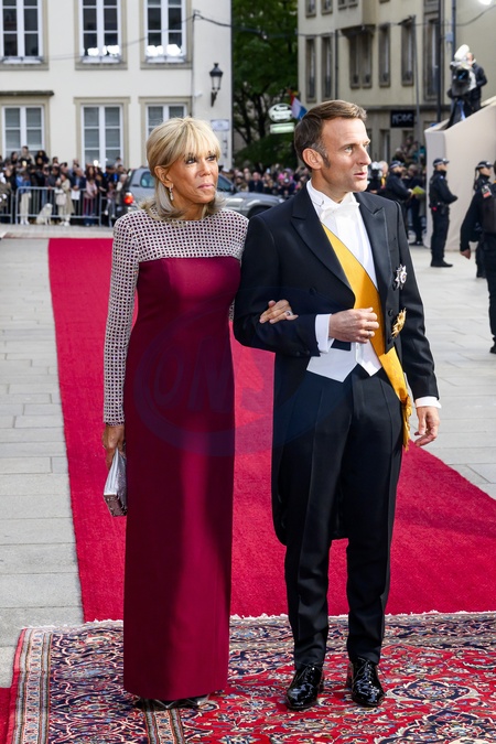 Luxemburg, The Netherlands, 2025-10-03 18:37:11LUXEMBOURG, 03-10-2025, Grand Ducal Palace Abdication of His Royal Highness Grand Duke Henri and the installation of His Royal Highness Hereditary Grand Duke Guillaume PHOTO: NLBeeld/Patrick van EmstIn the photo: Emmanuel Macron and Brigitte Macron, Credit:Avalon