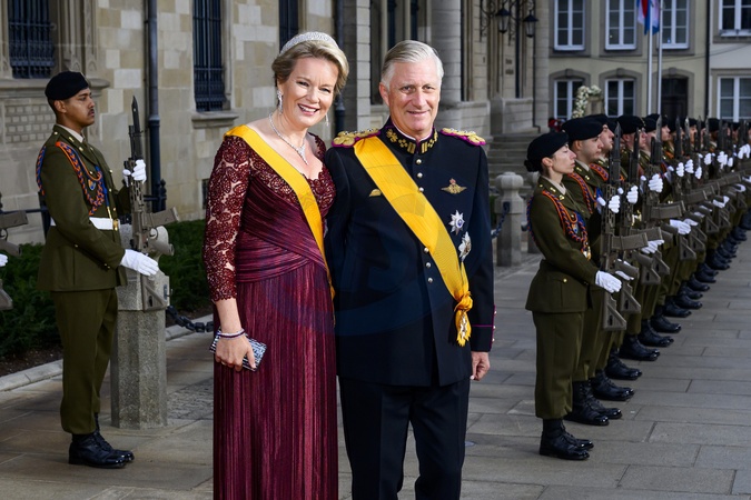 Luxemburg, The Netherlands, 2025-10-03 18:42:01LUXEMBOURG, 03-10-2025, Grand Ducal PalaceAbdication of His Royal Highness Grand Duke Henri and the installation of His Royal Highness Hereditary Grand Duke Guillaume PHOTO: NLBeeld/Patrick van EmstIn the photo: King Philippe of Belgium with Queen Mathilde, Credit:Avalon