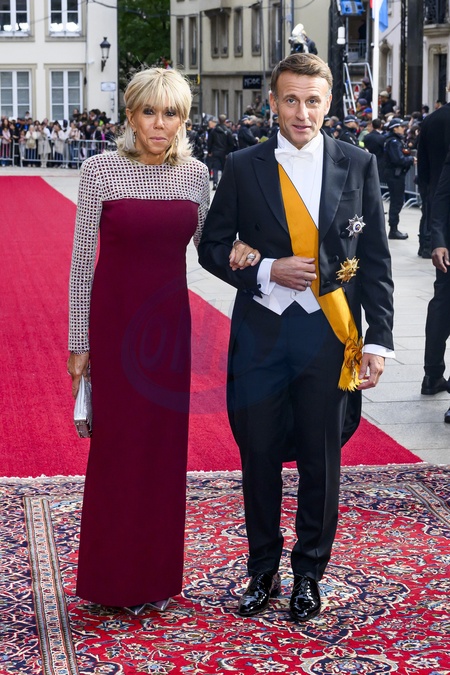 Luxemburg, The Netherlands, 2025-10-03 18:37:27LUXEMBOURG, 03-10-2025, Grand Ducal Palace Abdication of His Royal Highness Grand Duke Henri and the installation of His Royal Highness Hereditary Grand Duke Guillaume PHOTO: NLBeeld/Patrick van EmstIn the photo: Emmanuel Macron and Brigitte Macron, Credit:Avalon