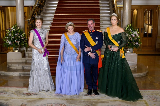 Luxemburg, The Netherlands, 2025-10-03 18:45:24LUXEMBOURG, 03-10-2025, Grand Ducal Palace Abdication of His Royal Highness Grand Duke Henri and the installation of His Royal Highness Hereditary Grand Duke Guillaume PHOTO: NLBeeld/Patrick van Emst Pictured: Grand Duke Guillaume of Luxembourg and Duchess Stéphanie with Crown Princess Elisabeth and Princess Amalia, Credit:Avalon