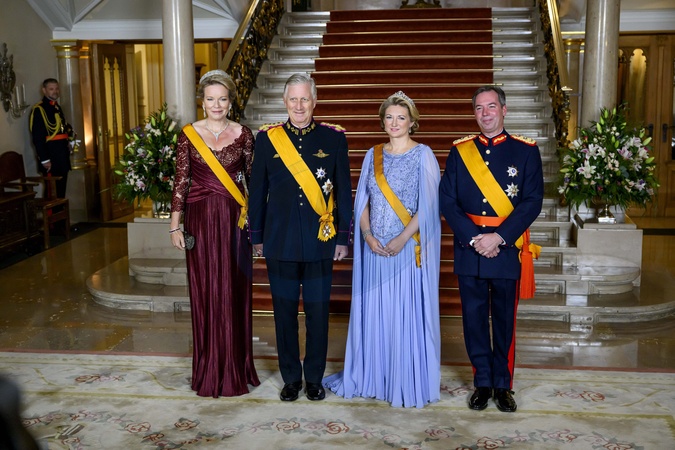 Luxemburg, The Netherlands, 2025-10-03 18:43:50LUXEMBOURG, 03-10-2025, Grand Ducal PalaceAbdication of His Royal Highness Grand Duke Henri and the installation of His Royal Highness Hereditary Grand Duke Guillaume PHOTO: NLBeeld/Patrick van EmstIn the photo: Grand Duke Guillaume of Luxembourg and Duchess Stéphanie with King Philippe of Belgium with Queen Mathilde, Credit:Avalon