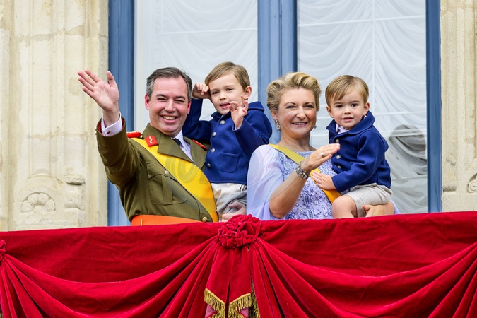 Luxemburg, The Netherlands, 2025-10-03 12:18:59LUXEMBOURG, 03-10-2025, Abdication of His Royal Highness Grand Duke Henri and the installation of His Royal Highness Hereditary Grand Duke Guillaume PHOTO: NLBeeld/Patrick van EmstIn the photo: Grand Duke Guillaume of Luxembourg and Duchess Stéphanie with their children Charles of Luxembourg and François of Luxembourg, Credit:Avalon