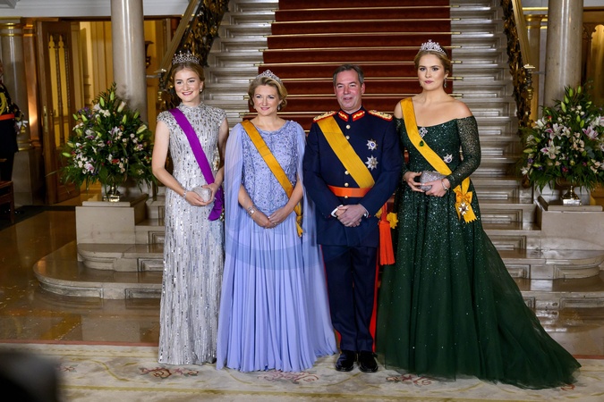 Luxemburg, The Netherlands, 2025-10-03 18:45:34LUXEMBOURG, 03-10-2025, Grand Ducal Palace Abdication of His Royal Highness Grand Duke Henri and the installation of His Royal Highness Hereditary Grand Duke Guillaume PHOTO: NLBeeld/Patrick van Emst Pictured: Grand Duke Guillaume of Luxembourg and Duchess Stéphanie with Crown Princess Elisabeth and Princess Amalia, Credit:Avalon