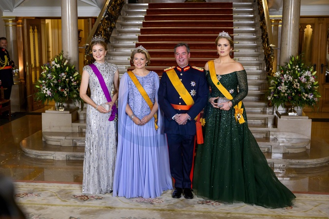 Luxemburg, The Netherlands, 2025-10-03 18:45:32LUXEMBOURG, 03-10-2025, Grand Ducal Palace Abdication of His Royal Highness Grand Duke Henri and the installation of His Royal Highness Hereditary Grand Duke Guillaume PHOTO: NLBeeld/Patrick van Emst Pictured: Grand Duke Guillaume of Luxembourg and Duchess Stéphanie with Crown Princess Elisabeth and Princess Amalia, Credit:Avalon
