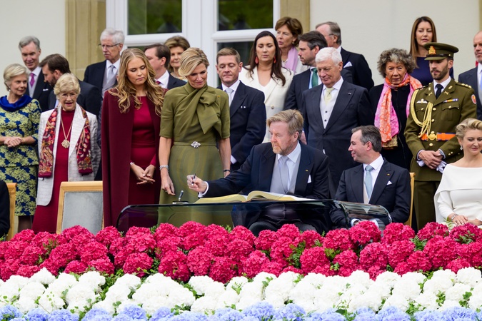 Luxemburg, The Netherlands, 2025-10-03 13:11:18LUXEMBOURG, 03-10-2025, Abdication of His Royal Highness Grand Duke Henri and the installation of His Royal Highness Hereditary Grand Duke Guillaume PHOTO: NLBeeld/Patrick van EmstIn the photo: King Willem Alexander, Queen Máxima and the Princess of Orange, Credit:Avalon