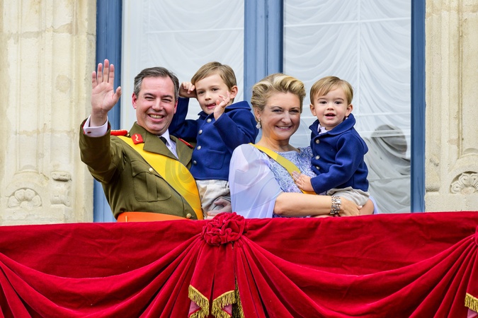 Luxemburg, The Netherlands, 2025-10-03 12:19:00LUXEMBOURG, 03-10-2025, Abdication of His Royal Highness Grand Duke Henri and the installation of His Royal Highness Hereditary Grand Duke Guillaume PHOTO: NLBeeld/Patrick van EmstIn the photo: Grand Duke Guillaume of Luxembourg and Duchess Stéphanie with their children Charles of Luxembourg and François of Luxembourg, Credit:Avalon
