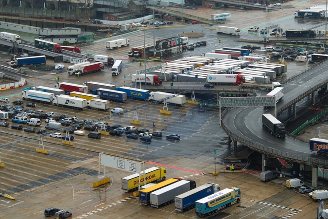 Lorries wait at the port of Dover before heading into Europe, Kent, UK, 24 July 2025, Credit:Alex Day / Avalon