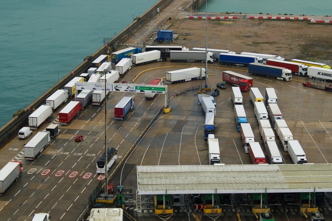 Lorries wait at the port of Dover before heading into Europe, Kent, UK, 24 July 2025, Credit:Alex Day / Avalon
