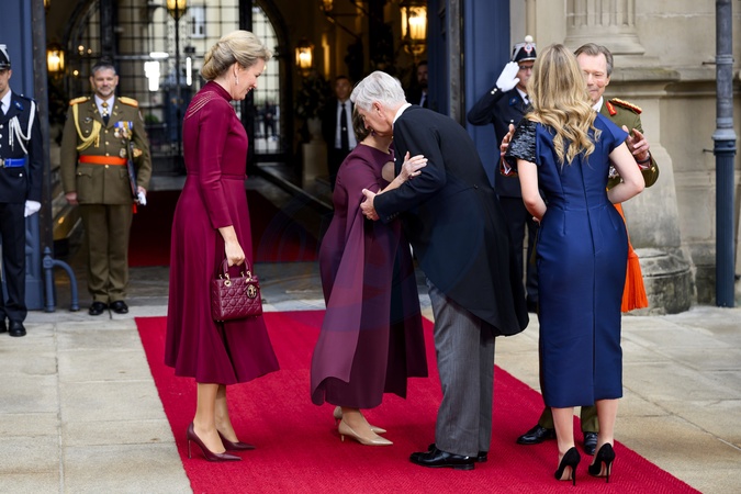 Luxemburg, The Netherlands, 2025-10-03 09:49:22LUXEMBOURG, 03-10-2025, Grand Ducal Palace Abdication of His Royal Highness Grand Duke Henri and the installation of His Royal Highness Hereditary Grand Duke Guillaume PHOTO: NLBeeld/Patrick van EmstIn the photo: Grand Duke Henri and Duchess Maria Teresa of Luxembourg with King Philippe of Belgium with Queen Mathilde and Elisabeth of Belgium, Credit:Avalon
